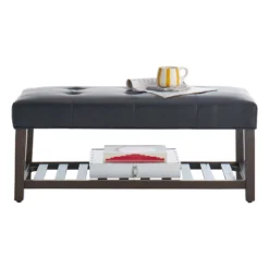 Jasmine Charcoal Grey Upholstered Storage Bench With Nail Heads