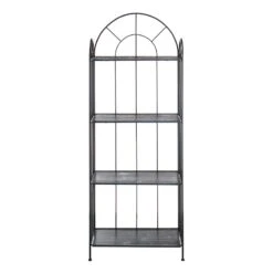 61in. Brown Decorative Arch Metal Rack With Folding Wood Top Shelves