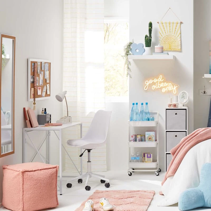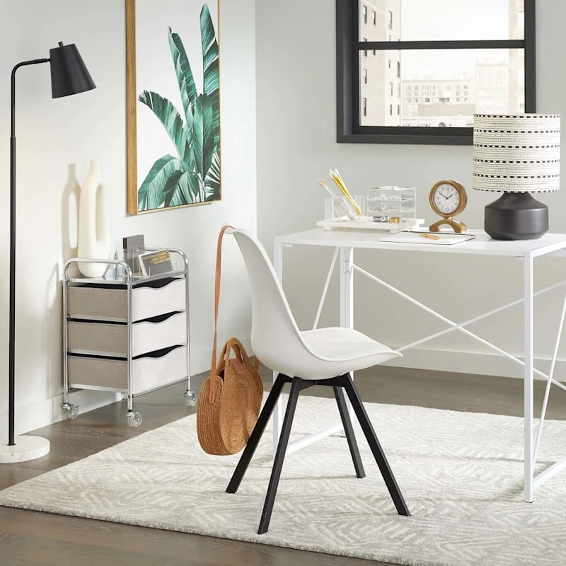 Industrial modern is all the rage, and our Vienna folding office desk offers simple styling that makes this contemporary trend so desirable. Working from home continuing to be a challenge? Then maybe it�s time to simplify your workspace with this clean, uber-modern desk, featuring an all-white top and metal frame with cross bars. Exuding loads of style, the crossed-leg design comes together to support this sturdy desk. Whether you�re doing homework, responding to emails or writing holiday cards, this desk adds effortless contemporary style to any workspace � and if you�re short on space, just fold it up and store it away!